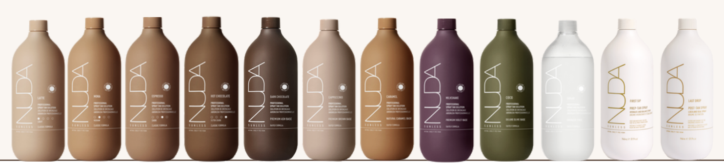 Luxury without compromise. From elevated scent profiles to silky, non-staining water-based formulas, NUDA offers a truly elevated sunless experience for both artist and client.